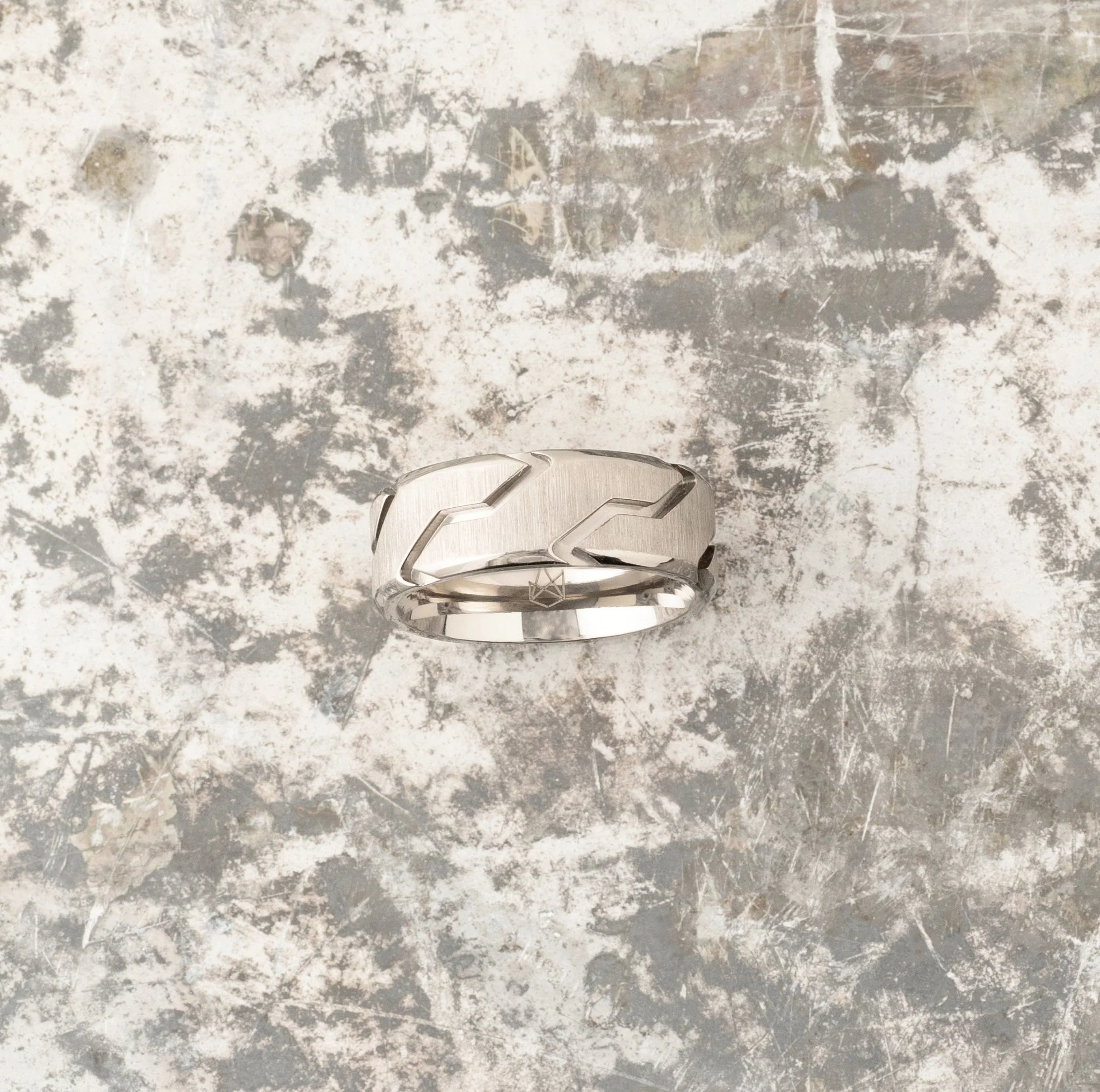 Titanium Silver Striker: The EMBR titanium band offers a stunning, bold touch on a modern ring. Although extremely lightweight, titanium has an impressive strength-to-weight ratio, meaning it is an exceptionally strong and durable metal. It ranks a 6 on the Mohs Hardness scale, compared to a gold band with a rating of 3. It is hypoallergenic, highly resistant to corrosions, and easily maintained. This EMBR titanium band might feel light as a feather, but it is designed to stand the test of time.